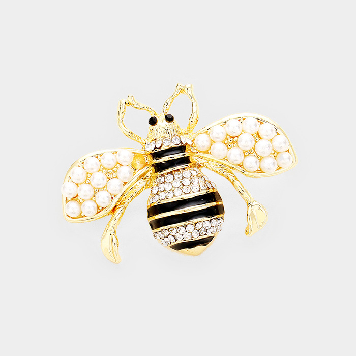 Crystal Paved Pearl Honey Bee Pin Brooch