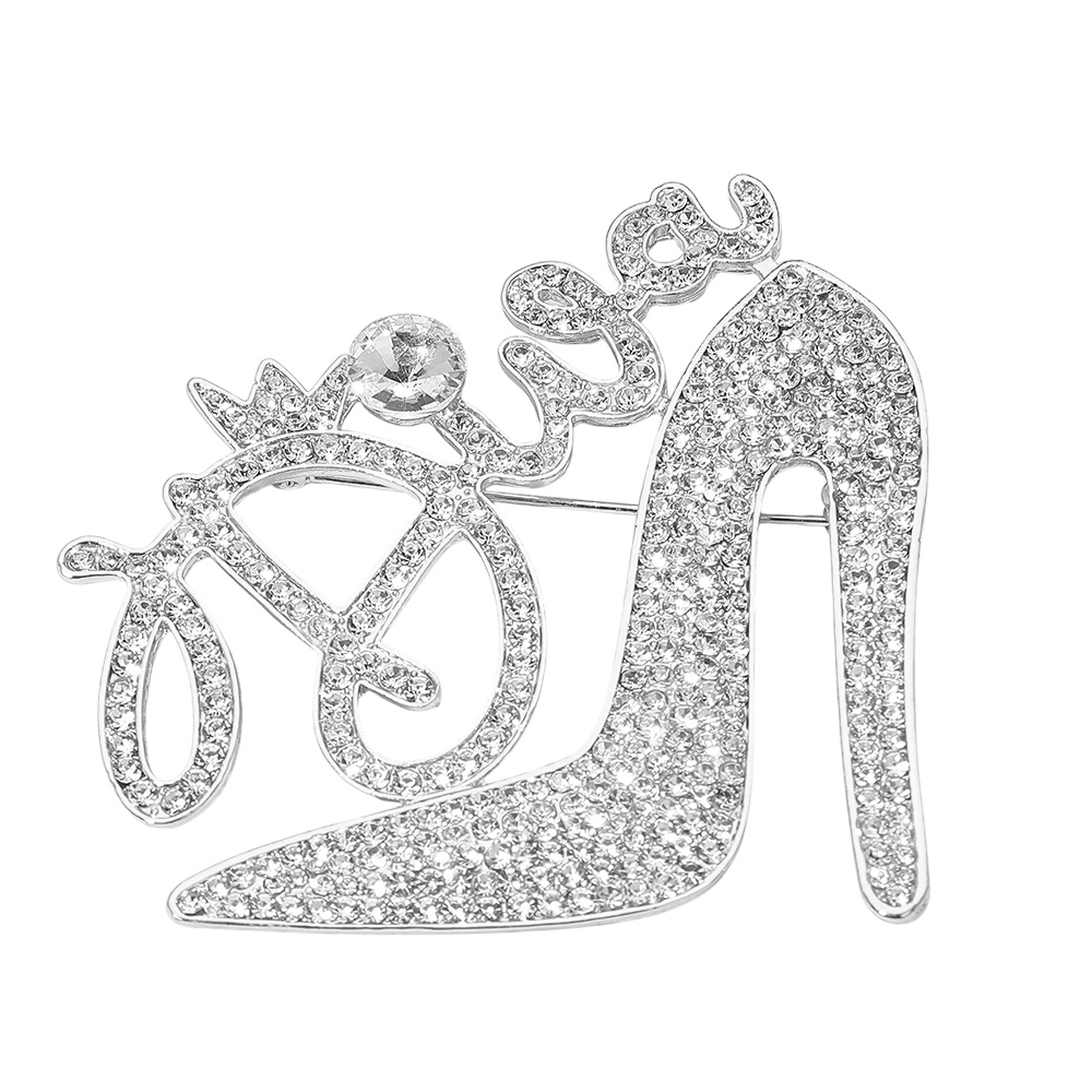 Diva Message Glamorous High Heel Crystal Rhinestone Pin Brooch