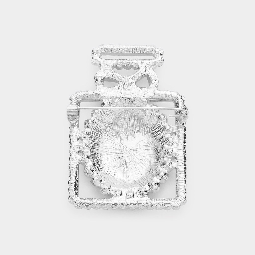 Double Open Circle Link Stone Embellished Perfume Pin Brooch
