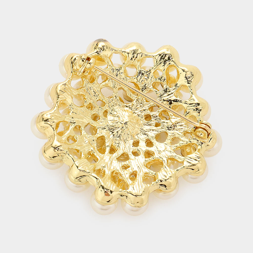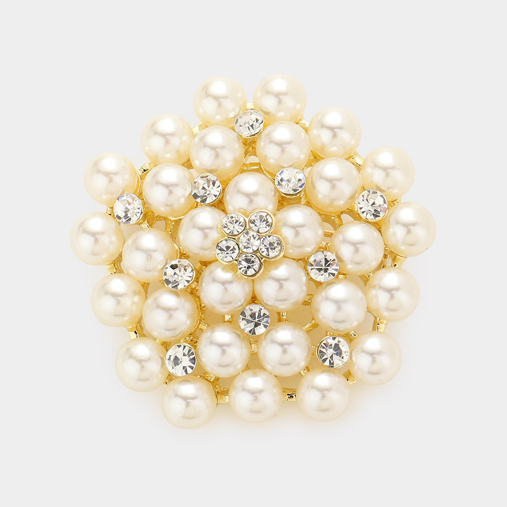 Floral Crystal Pearl Cluster Pin Brooch