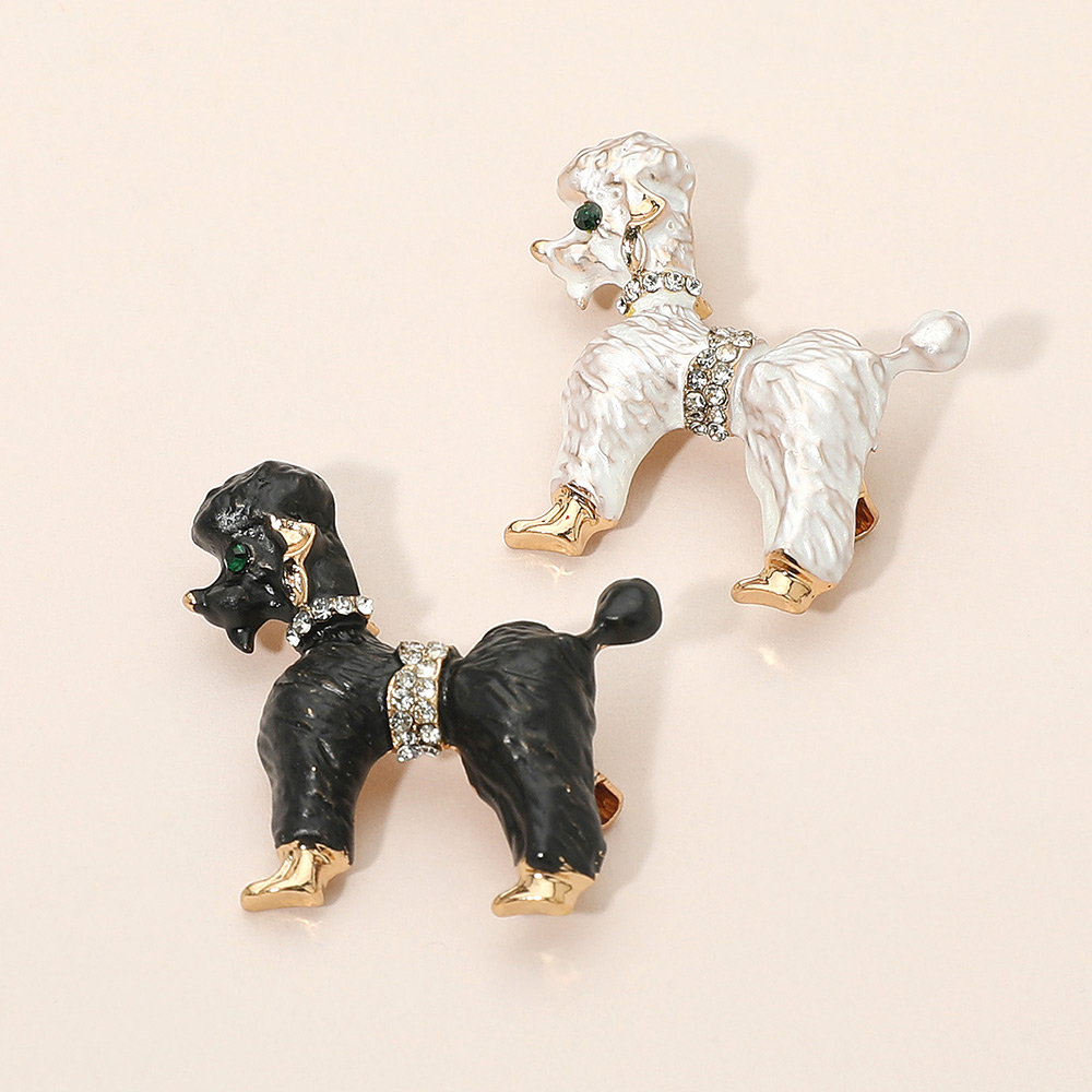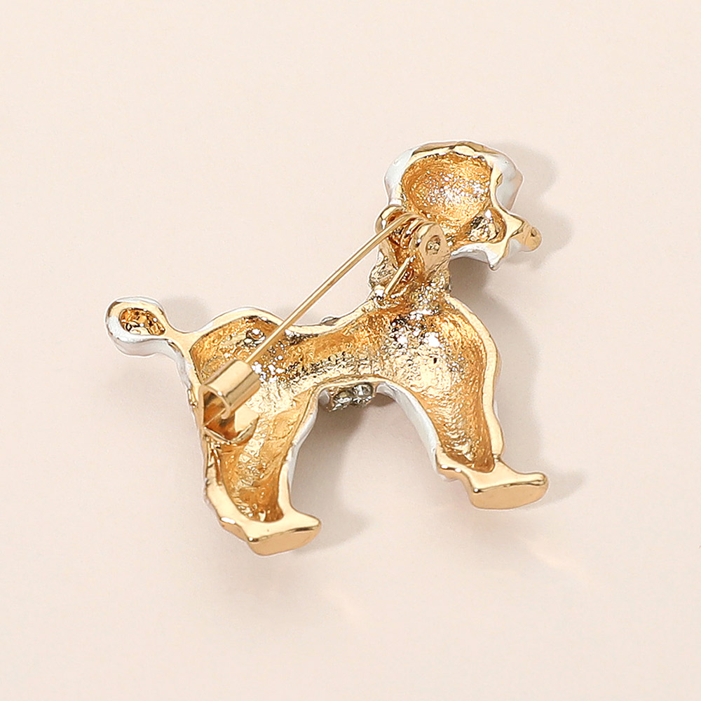 Details • Size : 1.3" X 1.4" • Pin Brooch • Charming poodle brooch adorned with sparkling crystal collar and waist accents, detailed enamel finish, and gold-toned highlights. A delightful accessory for dog lovers, this brooch adds sophistication to jackets, scarves, or handbags while showcasing a love for pets and elegant fashion flair. • Gold Dipped • Lead and Nickel Compliant