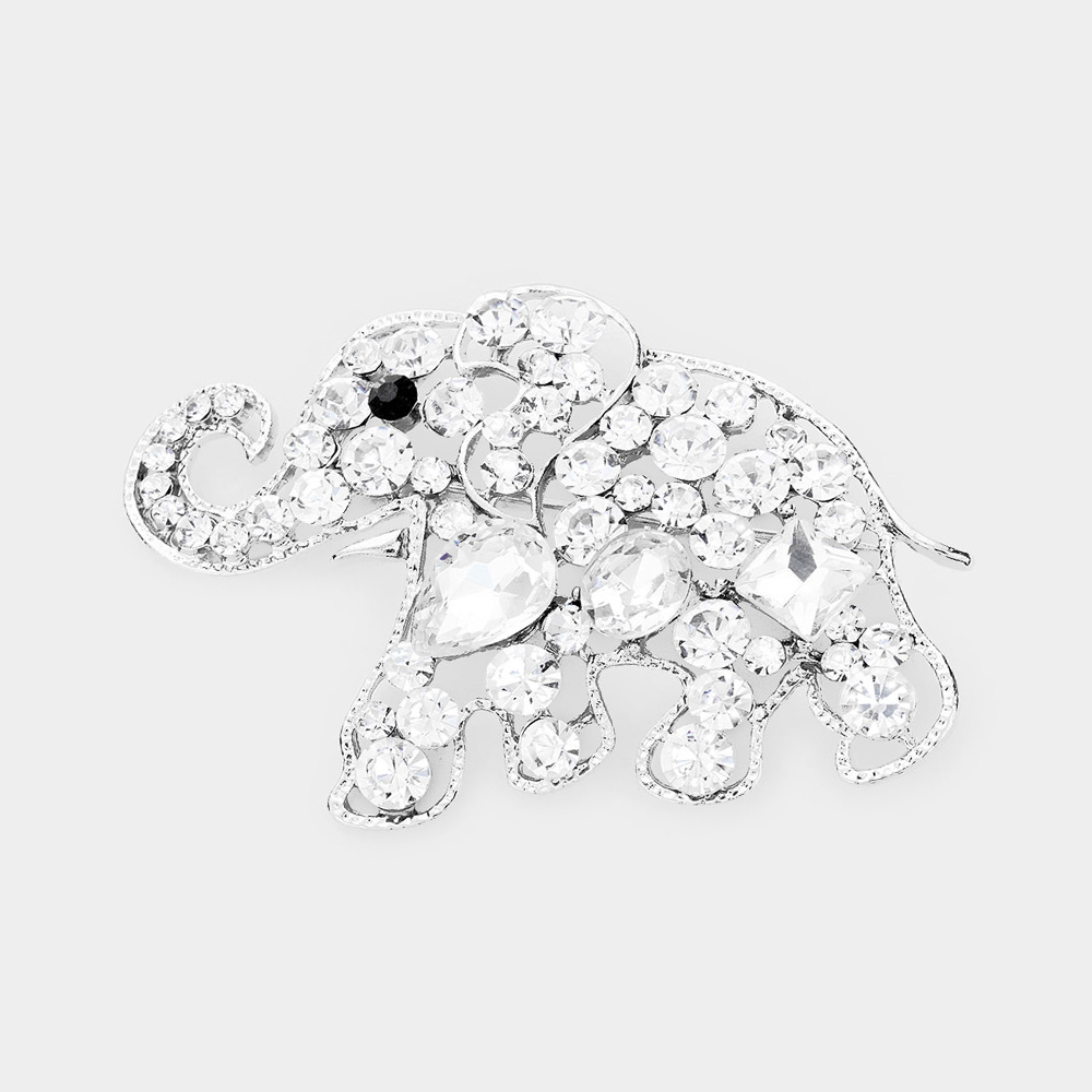 Details • Size : 2.75" X 1.75" • Pin Brooch • Bring charm and elegance to your look with this jeweled elephant brooch, adorned with sparkling stones for a radiant finish. Perfect as a statement accessory, it adds a playful yet sophisticated touch to jackets, dresses, scarves, or bags. A versatile animal pin ideal for gifting or personal style. • Lead and Nickel Compliant