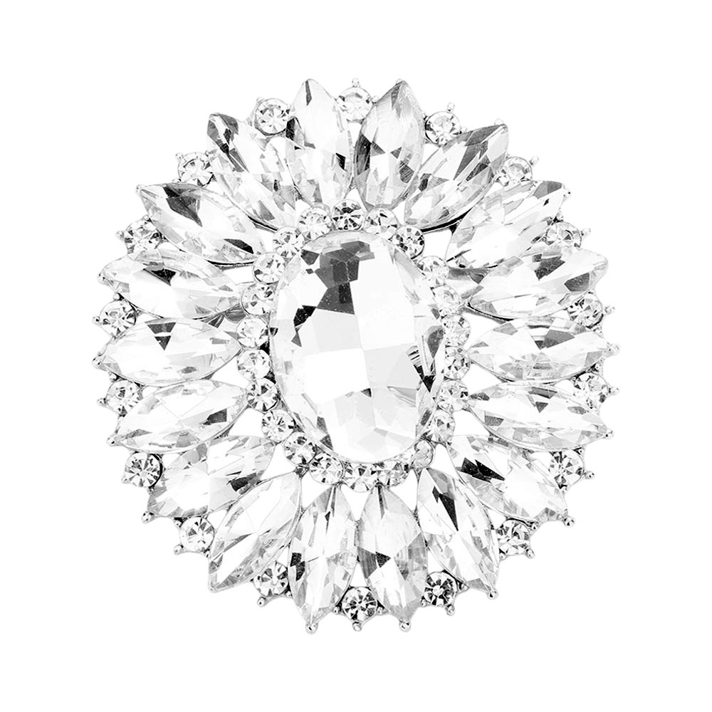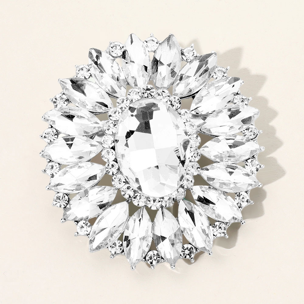 Marquise Crystal Statement Flower Pin Brooch