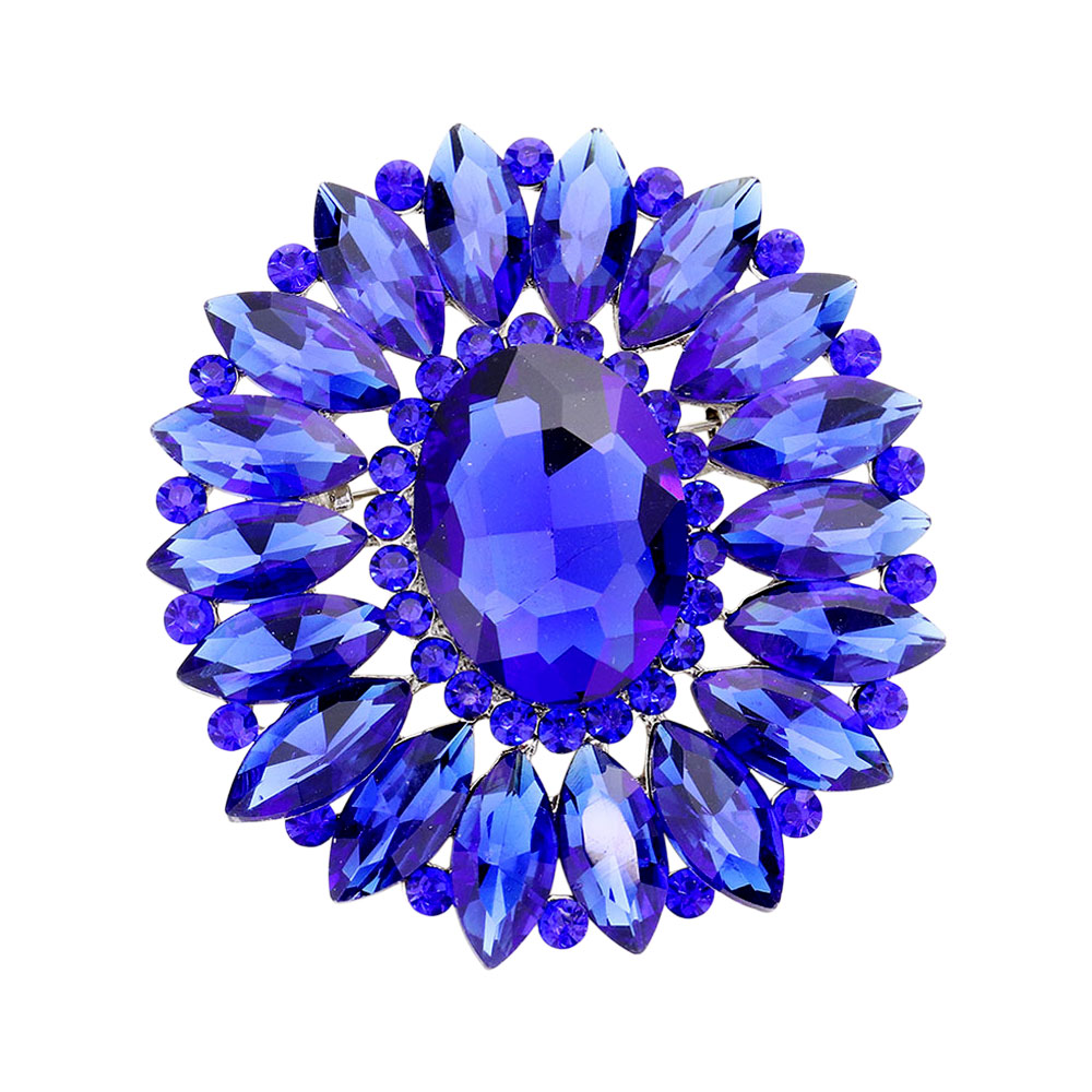• Striking oval brooch featuring a radiant crystal design that adds a vibrant and glamorous touch to jackets, scarves, or dresses. A standout accessory perfect for making a stylish statement at any occasion.