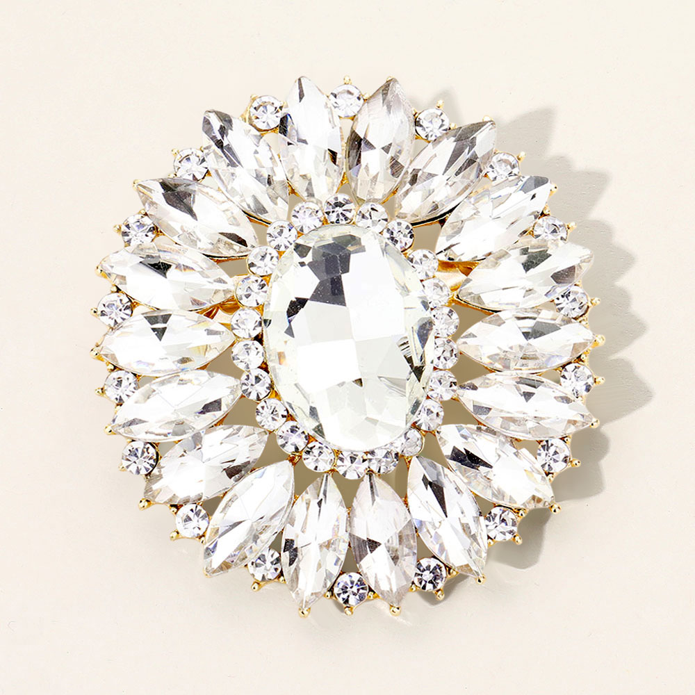 Marquise Crystal Statement Flower Pin Brooch