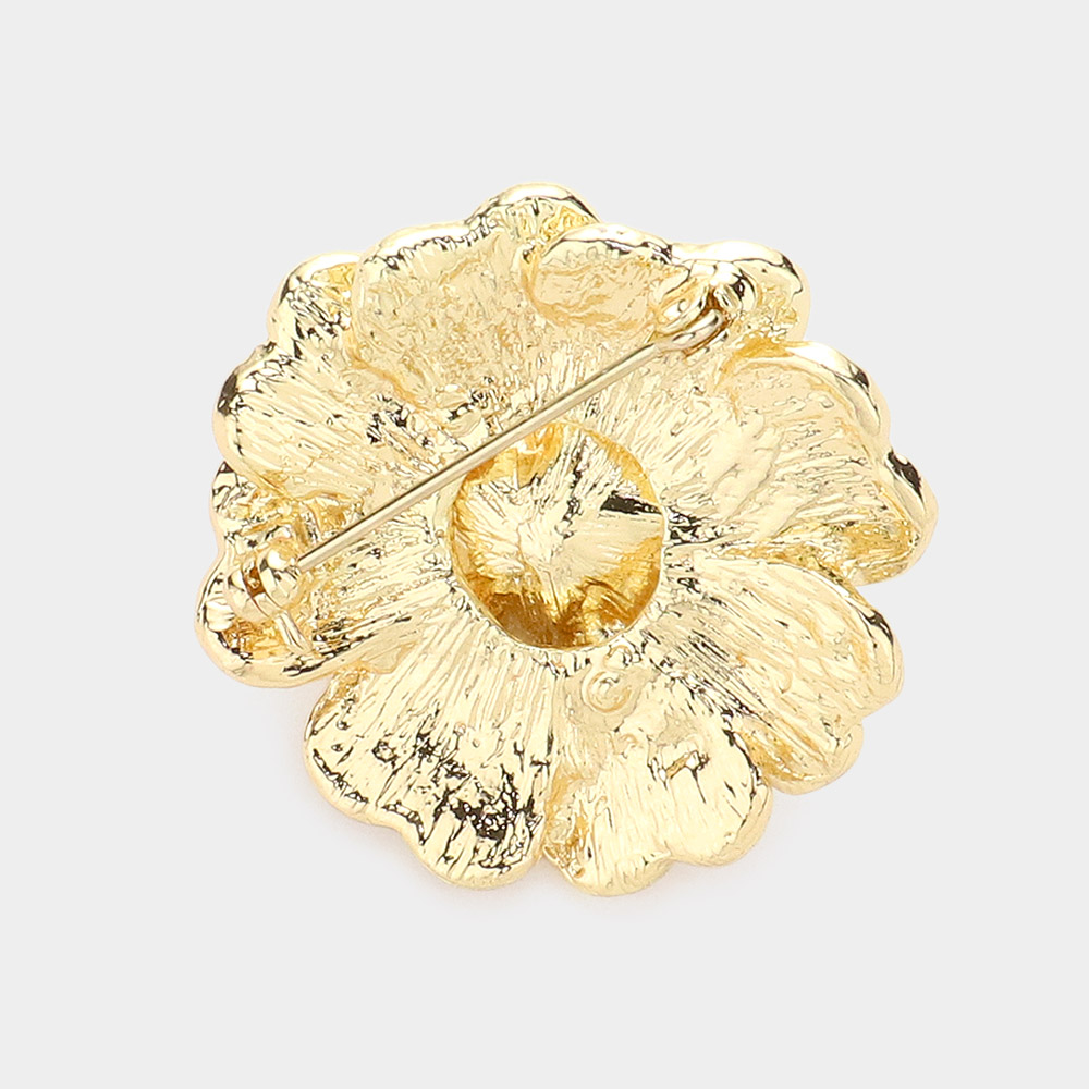 Pearl Centered Crystal Pave Flower Pin Brooch