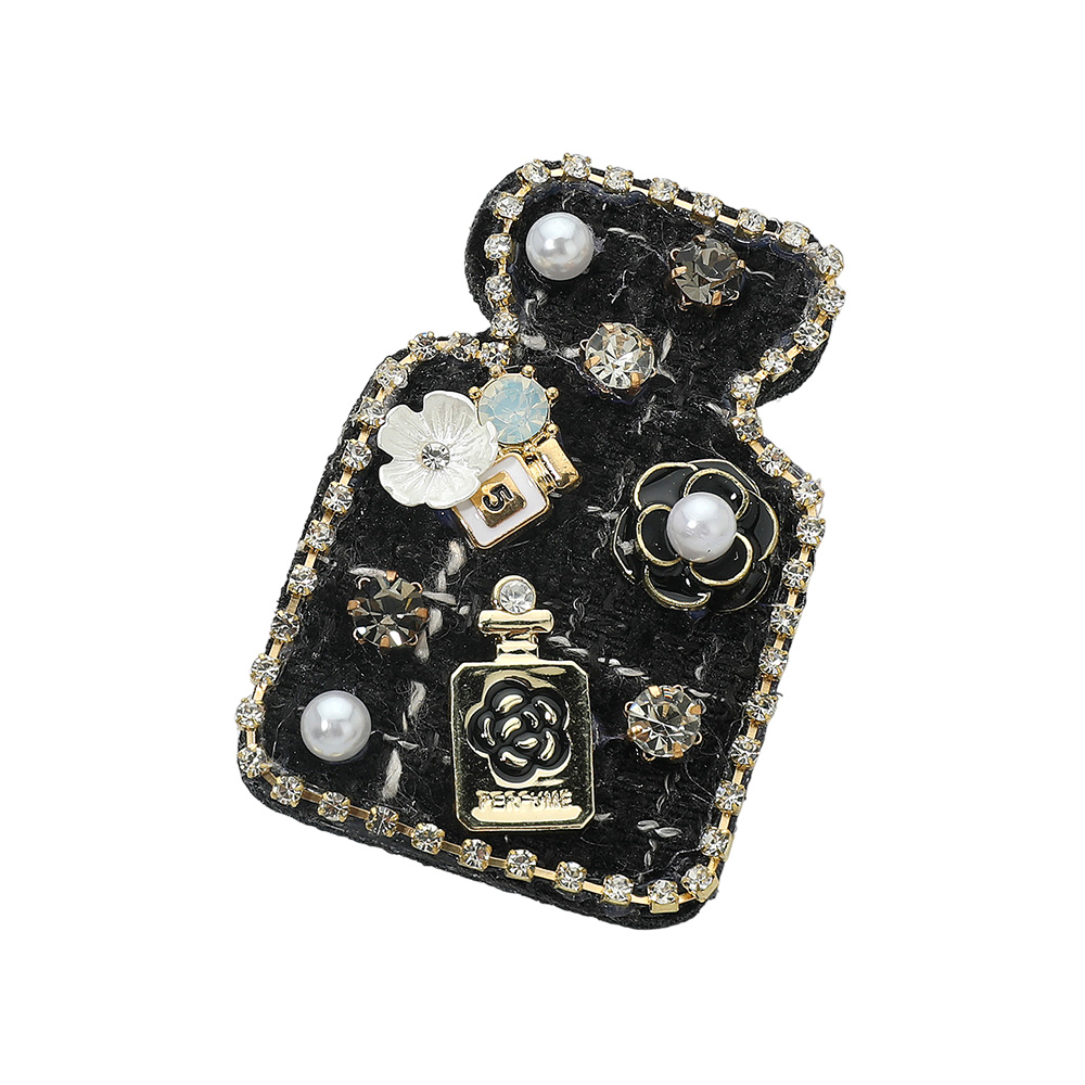 Details • Size : 1.7" X 2.5" • Dual : Pin Brooch / Hair Clip • Elevate your hairstyle with this perfume bottle inspired hair clip adorned with rhinestones, pearls, and floral accents. Its detailed design brings sophistication to parties, events, or casual wear, making it a versatile statement piece for any occasion. • Lead and Nickel Compliant