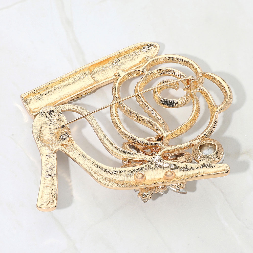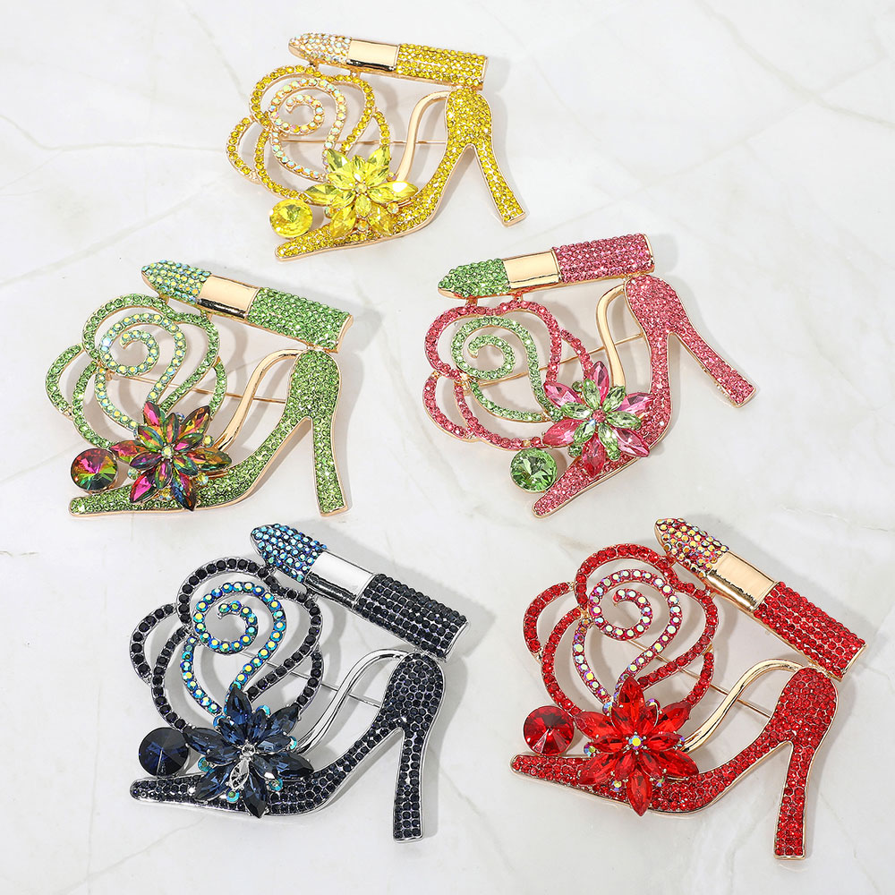 Rhinestone Embellished Flower Accent Glam High Heel Lipstick Pin Brooch