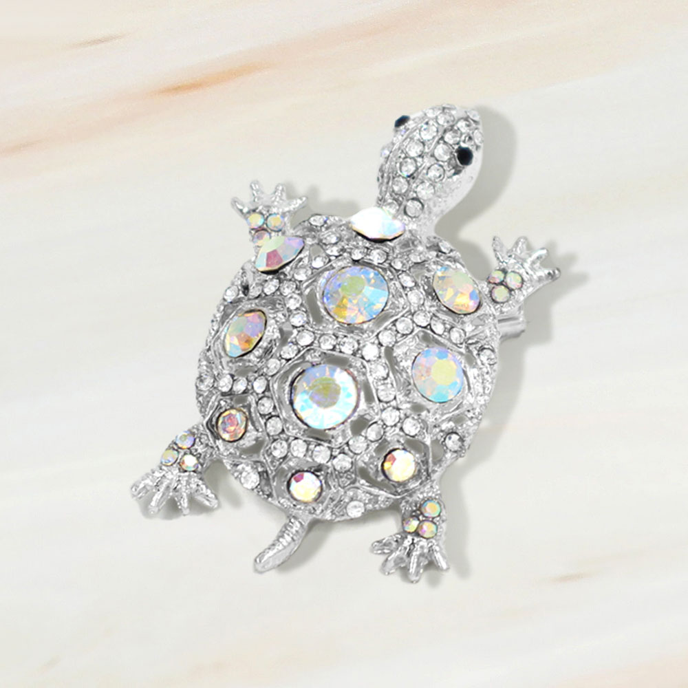 • This radiant turtle brooch features a stunning array of sparkling stones in an intricate design, perfect for adding a playful yet elegant accent to any outfit. A unique accessory ideal for gifting or elevating your personal style with a vibrant, eye-catching touch.