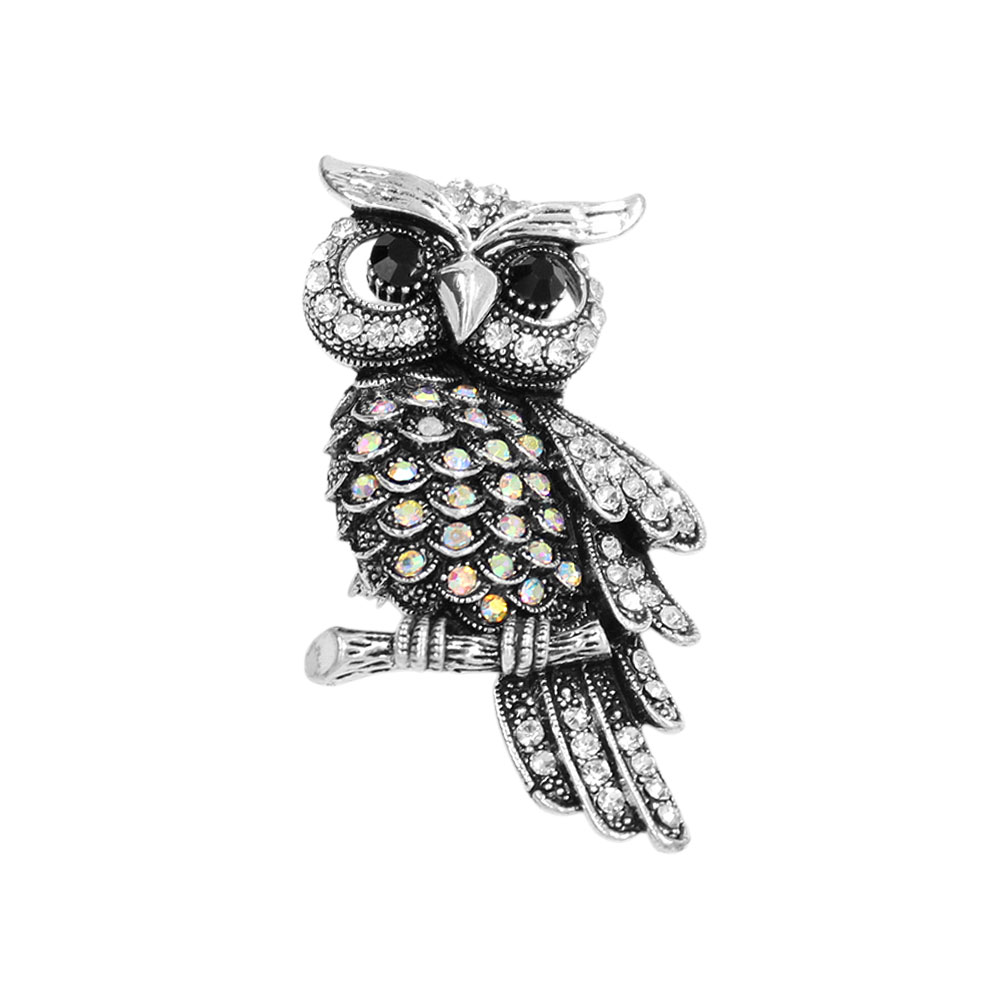 Details • Size : 1.5" X 2.25" • Dual : Brooch / Pendant • Elevate your style with this intricately designed owl brooch featuring shimmering crystals and fine detailing. A charming statement accessory that adds a touch of elegance to jackets, scarves, or bags. Perfect for gifting or enhancing any outfit. • Lead and Nickel Compliant