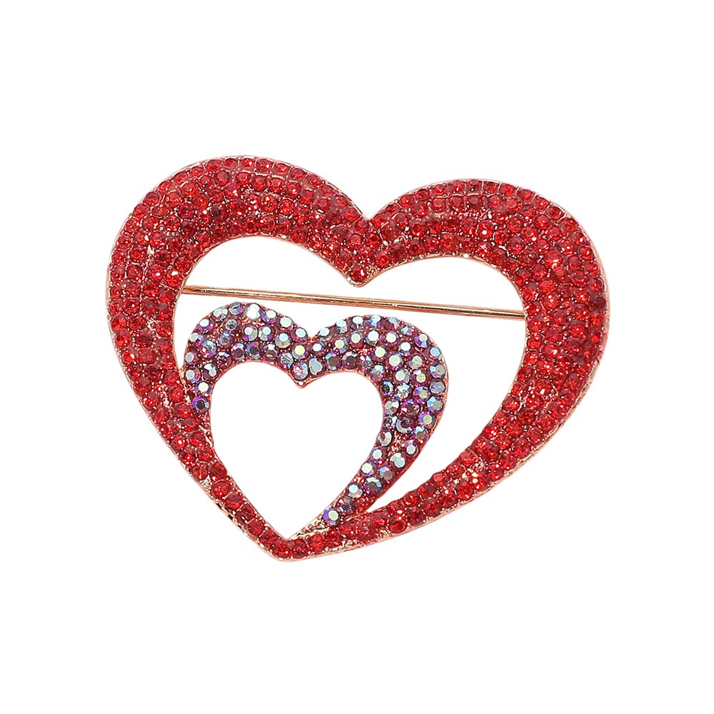 • Elegant double heart brooch featuring layered heart silhouettes with sparkling rhinestone accents. A romantic statement accessory ideal for jackets, dresses, scarves, or bags, perfect for gifting, special occasions, and expressive everyday styling.