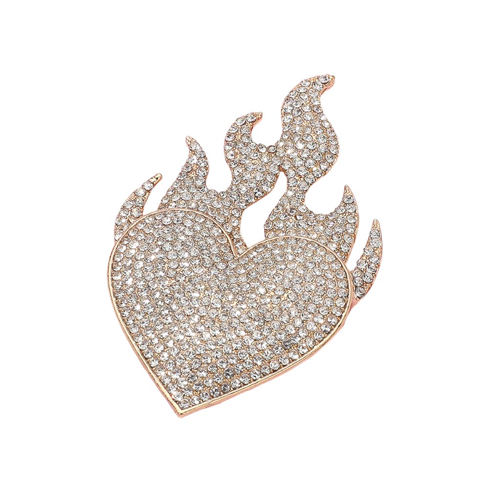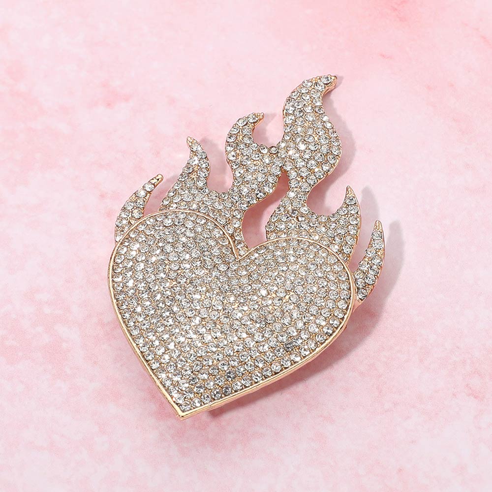 • Bold heart flame brooch designed with sparkling crystal details for eye-catching style. A dramatic statement accessory perfect for jackets, dresses, bags, and special occasions, adding glamour, edge, and fashion-forward appeal to any outfit.