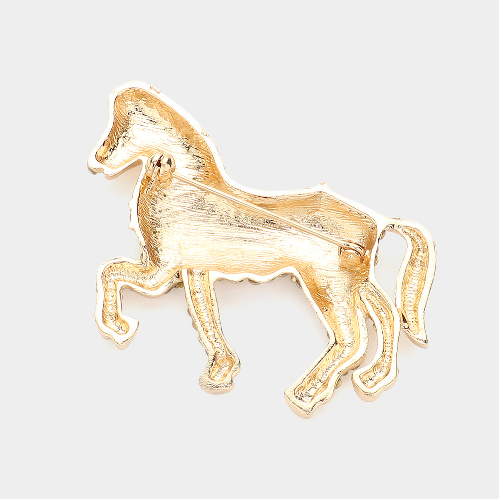 Rhinestone Paved Horse Pin Brooch