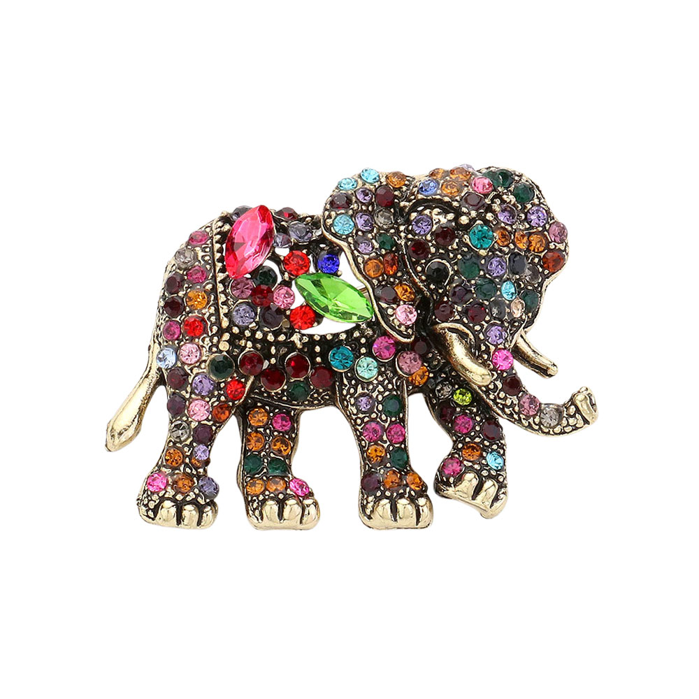 • Discover the elegant elephant brooch featuring sparkling multicolor rhinestones. A charming animal-inspired accessory that adds personality and sparkle to jackets, scarves, and bags. Perfect for casual or formal wear, it makes a unique and eye-catching statement piece.
