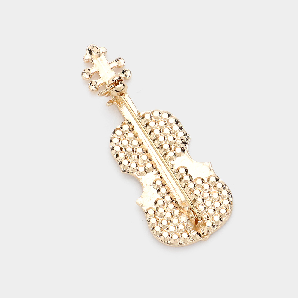 Details • Size : 1" X 2.3" • Pin Brooch • Elegant violin-shaped brooch pin accented with sparkling crystal details for a refined, artistic look. Designed to add musical charm to jackets, dresses, scarves, or bags, this statement accessory is perfect for music lovers, performers, and gift collections seeking a timeless, expressive accent. • Lead and Nickel Compliant