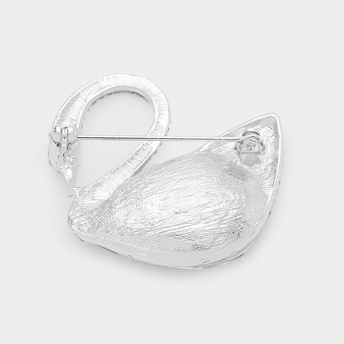 Teardrop Stone Accented Swan Brooch