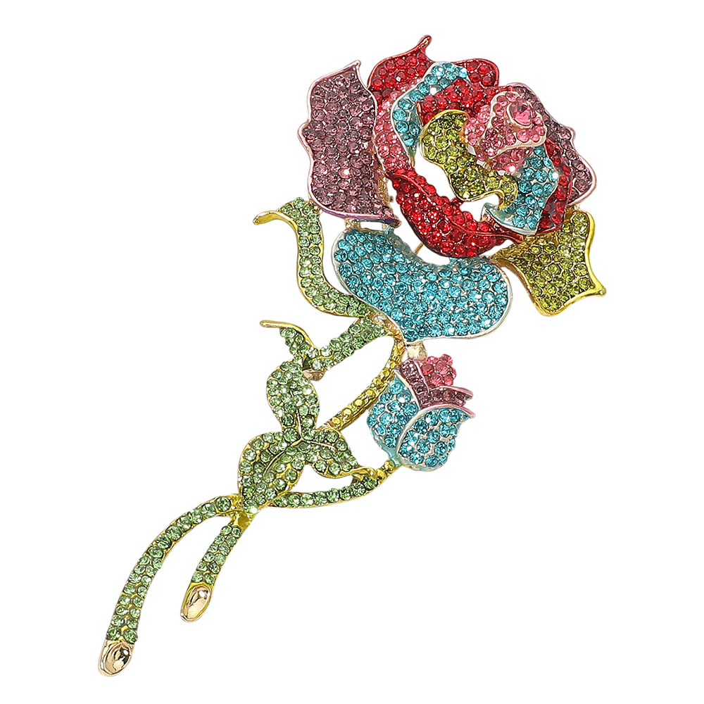 Details • Size : 2.5" X 5.5" • Pin Brooch • Chic rhinestone rose brooch featuring a detailed floral silhouette with shimmering stones on the petals, stem, and leaves. Perfect for accessorizing jackets, dresses, scarves, or bags with a refined and eye-catching statement touch. • Lead and Nickel Compliant