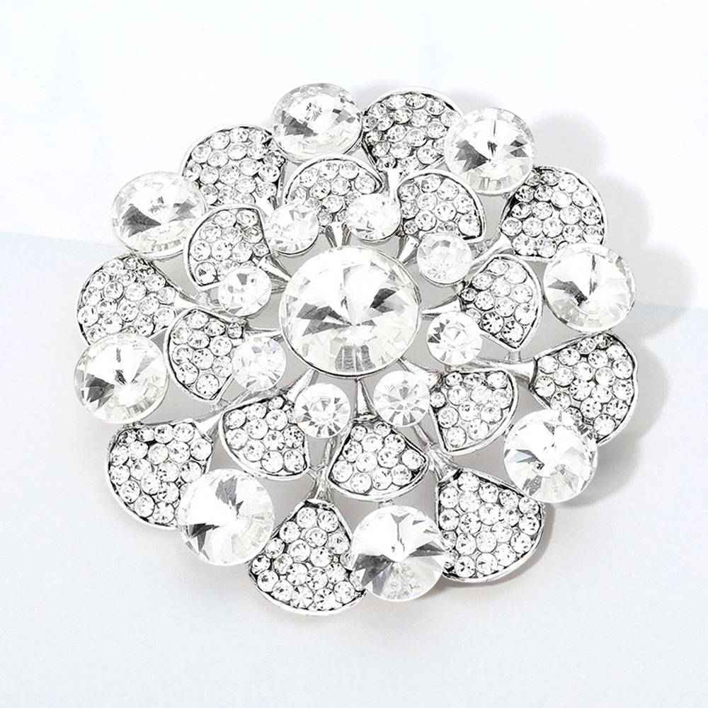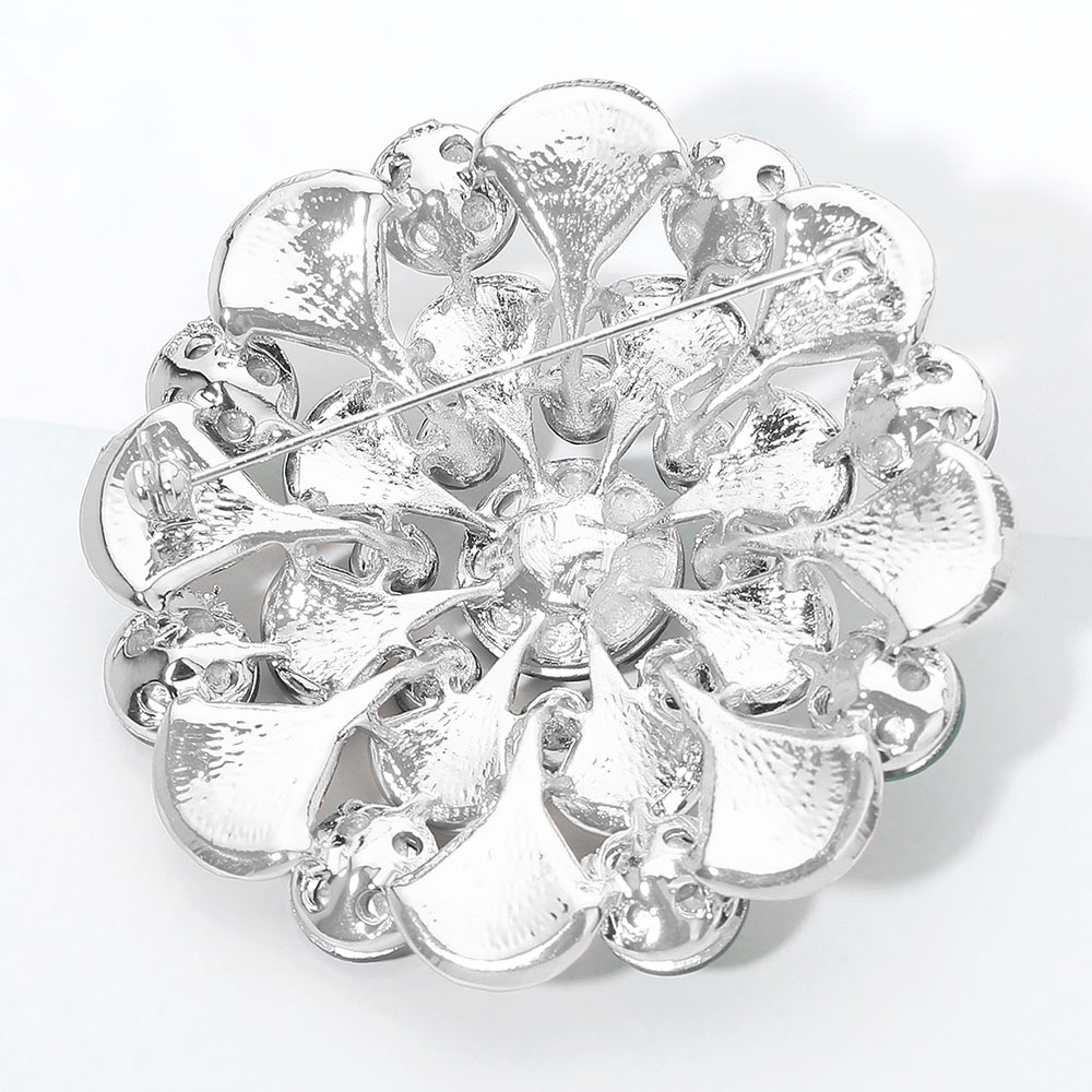 • This stunning round crystal flower brooch features layered gem accents that create a dazzling floral design. Perfect for elevating any outfit, it adds a touch of vintage-inspired glamour and refined brilliance to jackets, scarves, or formal attire.