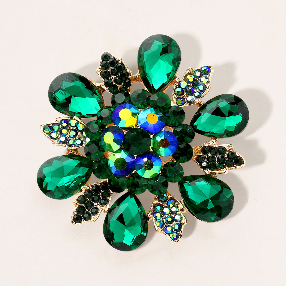 Floral Glass Stone Pin Brooch Floral Glass Stone Pin Brooch Floral Glass Stone Pin Brooch