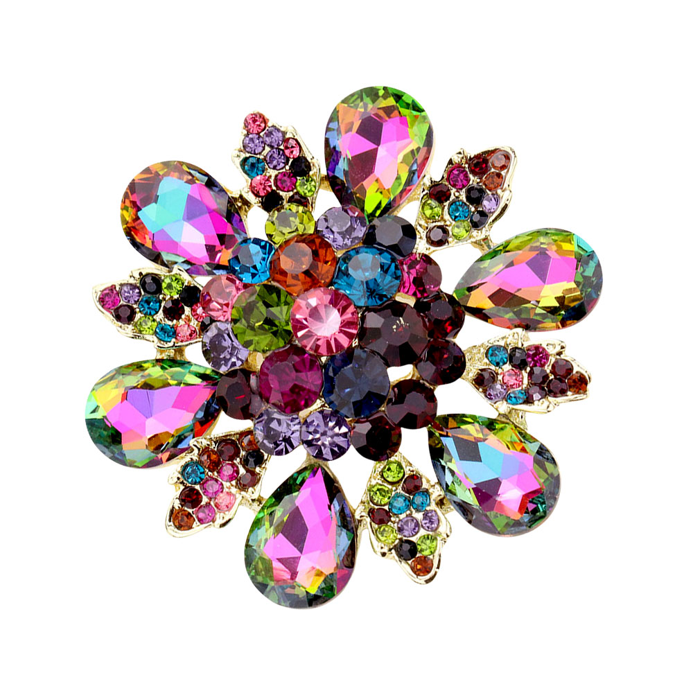 Floral Glass Stone Pin Brooch Floral Glass Stone Pin Brooch Floral Glass Stone Pin Brooch
