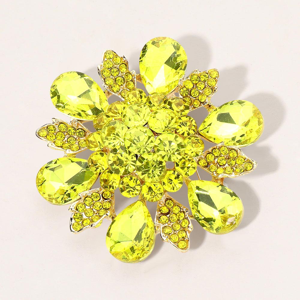 Details • Size : 2.5" X 2.5" • Pin Brooch • This elegant crystal flower brooch adds a radiant touch to any outfit with its beautifully arranged sparkling stones and refined floral silhouette. Perfect for elevating everyday looks or enhancing formal attire, it offers timeless charm and eye-catching brilliance. • Lead and Nickel Compliant