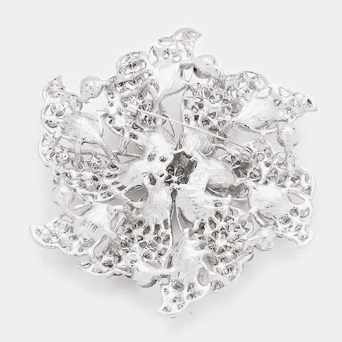 Round Stone Pointed Bling Studded Flower Pendant Long Necklace