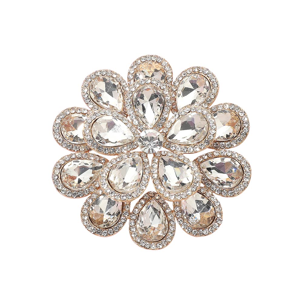 Details • Size : 2.6" X 2.6" • Pin Brooch • Eye-catching floral brooch designed with layered teardrop-shaped crystal accents forming a radiant flower silhouette. A bold statement piece ideal for jackets, dresses, scarves, and special occasion styling, perfect for gifting or elegant everyday looks. • Lead and Nickel Compliant