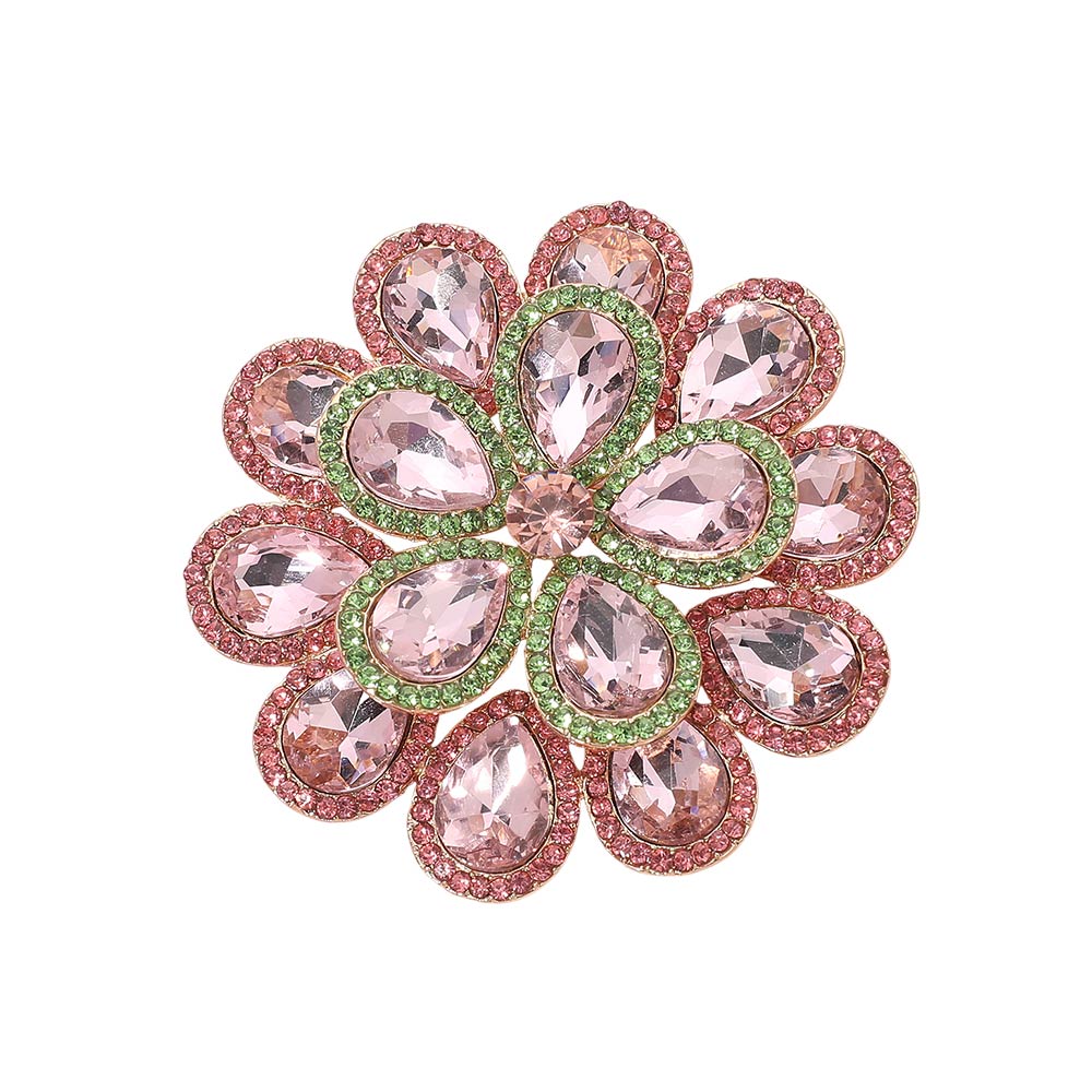 • Eye-catching floral brooch designed with layered teardrop-shaped crystal accents forming a radiant flower silhouette. A bold statement piece ideal for jackets, dresses, scarves, and special occasion styling, perfect for gifting or elegant everyday looks.