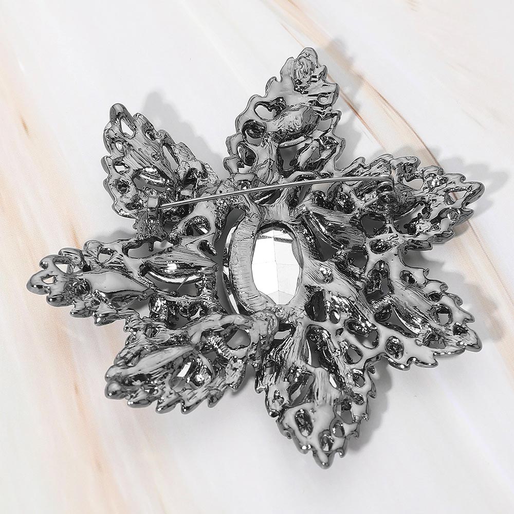 Details • Size : 3.6" X 3.6" • Pin Brooch • This ornate floral brooch features an intricately layered design with a bold faceted centerpiece surrounded by shimmering accents. Its radiant, sculpted silhouette adds a refined touch to formalwear, evening outfits, or special-occasion ensembles, creating a timeless statement full of sophistication. • Lead and Nickel Compliant