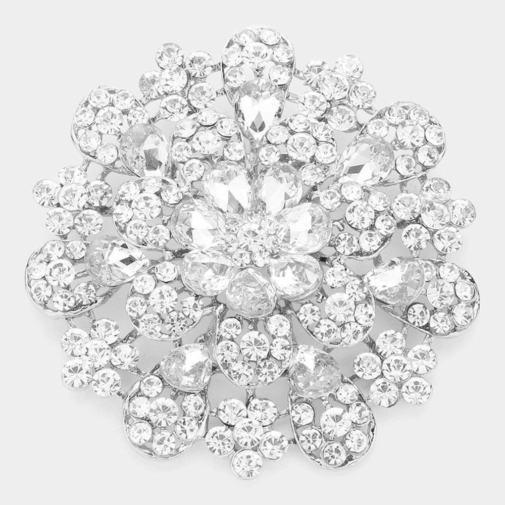 Oversized Flower Crystal Pave Pin Brooch