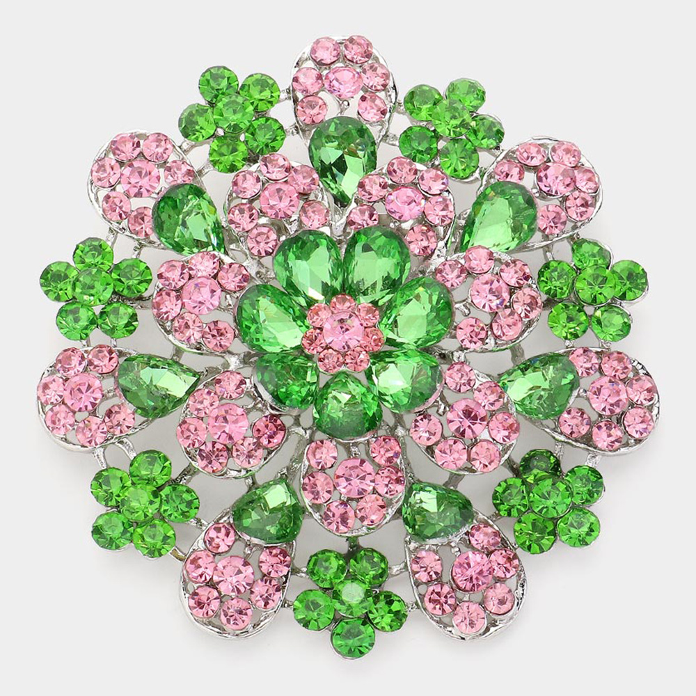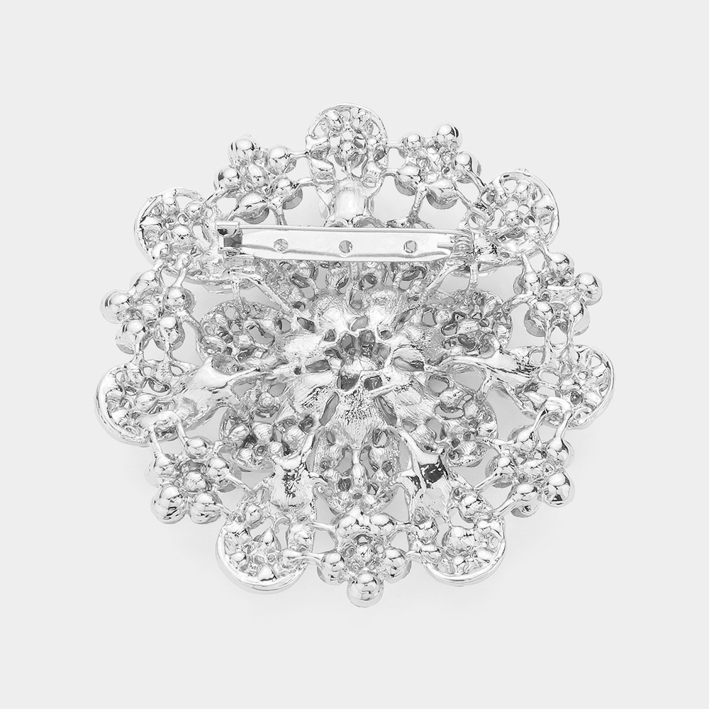 Oversized Flower Crystal Pave Pin Brooch