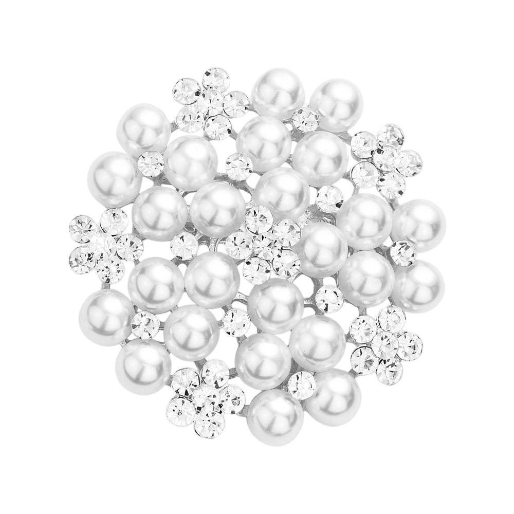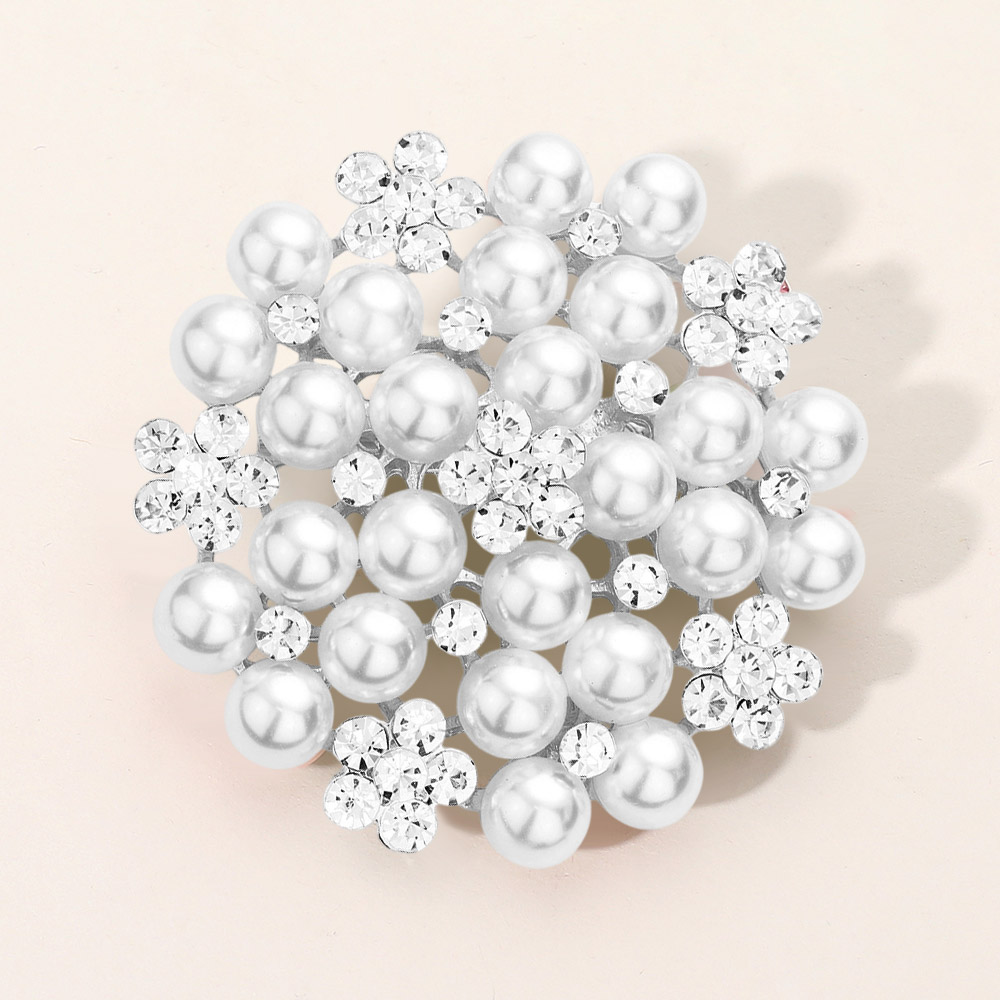 • Stylish floral cluster brooch featuring shimmering pearls and sparkling rhinestones, perfect for adding elegance to dresses, scarves, bags, and special occasions. A refined accessory that enhances outfits with timeless sparkle and charm.