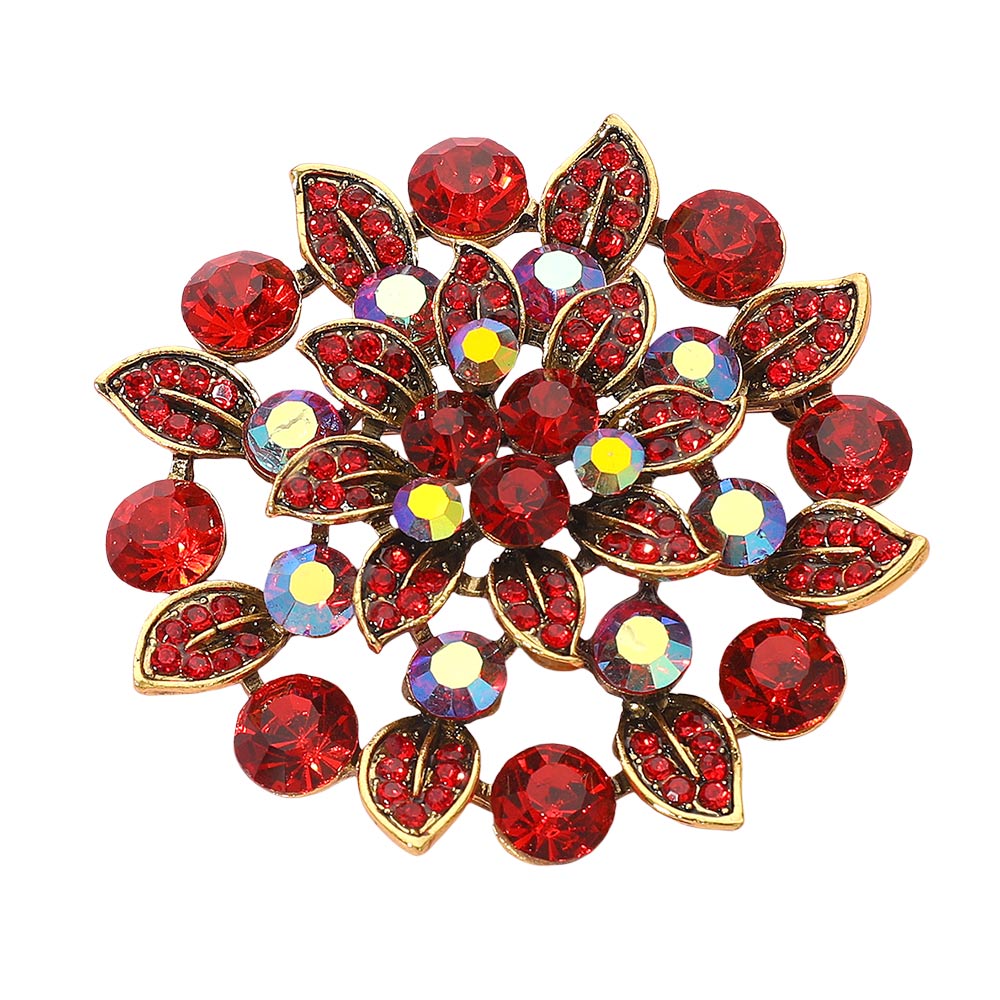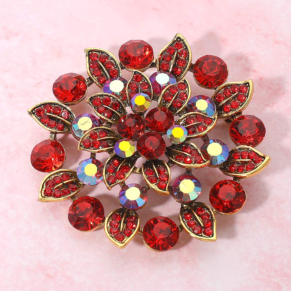 Details • Size : 2.8" X 2.8" • Pin Brooch • Enhance your style with this crystal flower brooch, designed with sparkling stones arranged in a floral and leaf motif. A versatile accessory perfect for weddings, parties, or daily wear, this elegant pin adds charm to jackets, scarves, handbags, or hats and makes a thoughtful gift for someone special. • Lead and Nickel Compliant