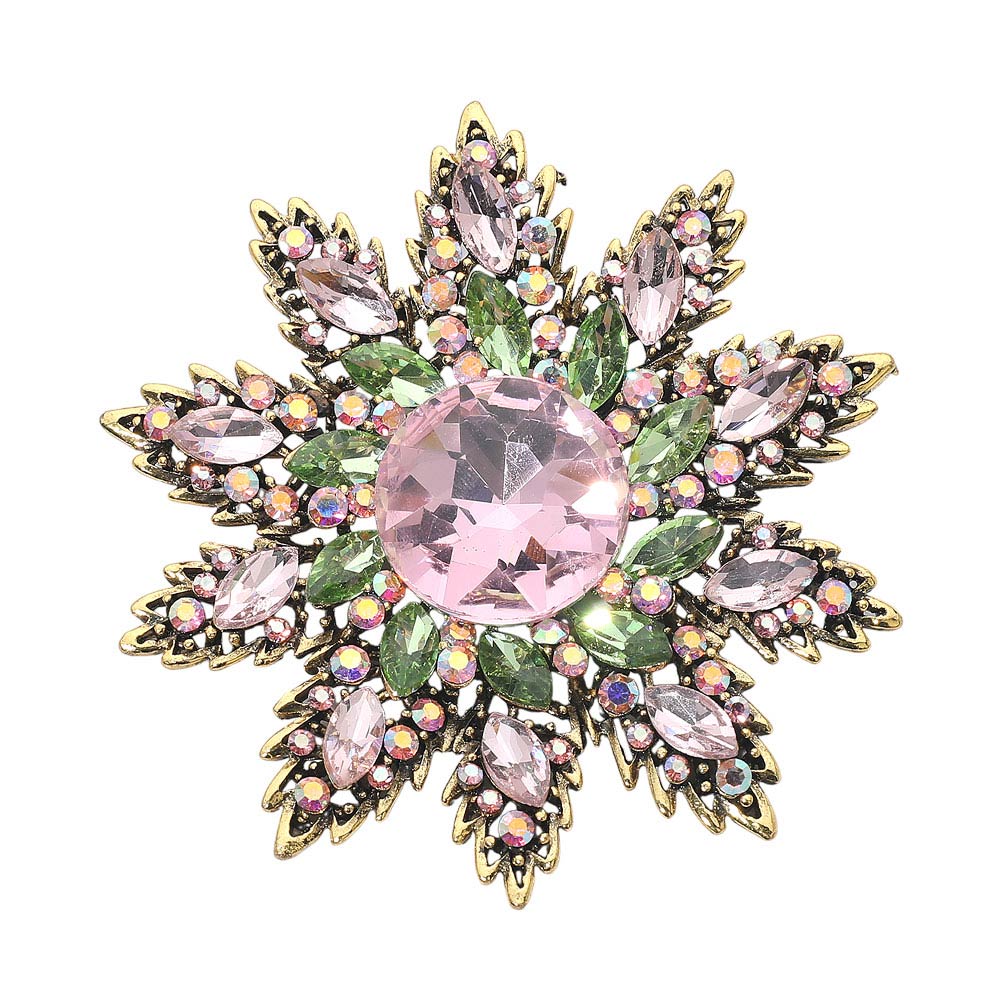 • Make a statement with this crystal floral starburst brooch, featuring a radiant layered design and a brilliant center stone that catches the light beautifully. A versatile accessory for elevating jackets, scarves, handbags, or special occasion looks.