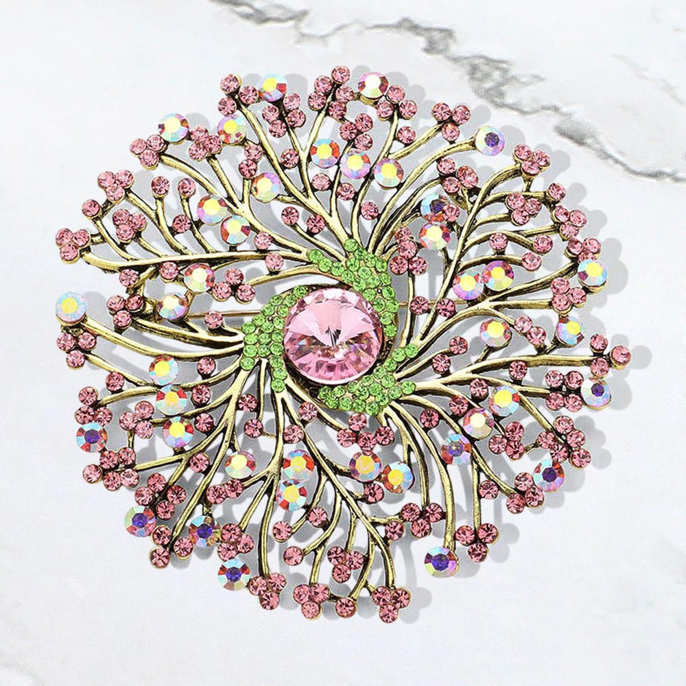 Floral Pinwheel Glass Crystal Pin Brooch