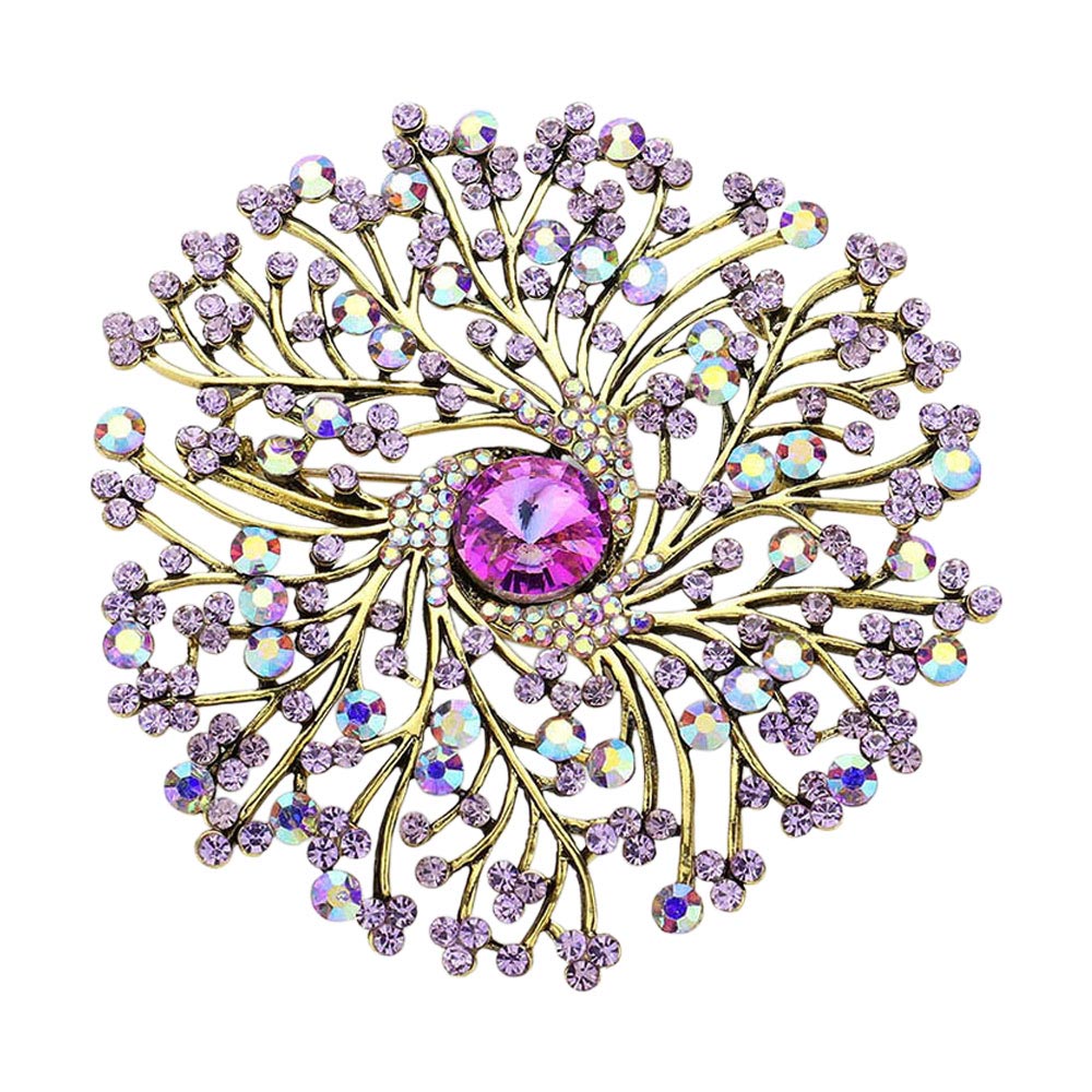 Details • Size : 3.6" X 3.6" • Pin Brooch • A dazzling brooch featuring an intricate burst design that captures light beautifully for an elegant, eye-catching finish. Perfect for adding a refined touch to formal wear, accessories, or special-occasion outfits with its sparkling, detailed craftsmanship. • Lead and Nickel Compliant