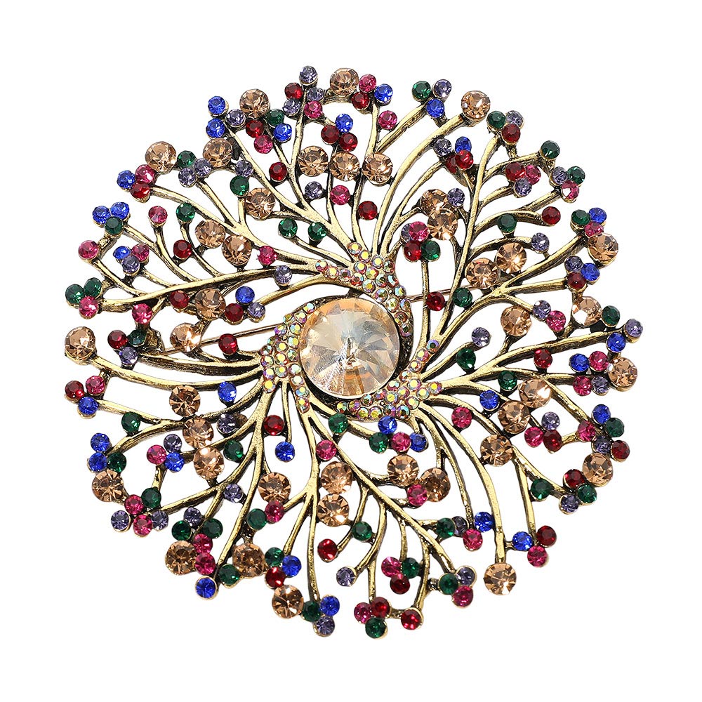 Round Stone Centered Rhinestone Embellished Branch Flower Pin Brooch Round Stone Centered Rhinestone Embellished Branch Flower Pin Brooch Round Stone Centered Rhinestone Embellished Branch Flower Pin Brooch