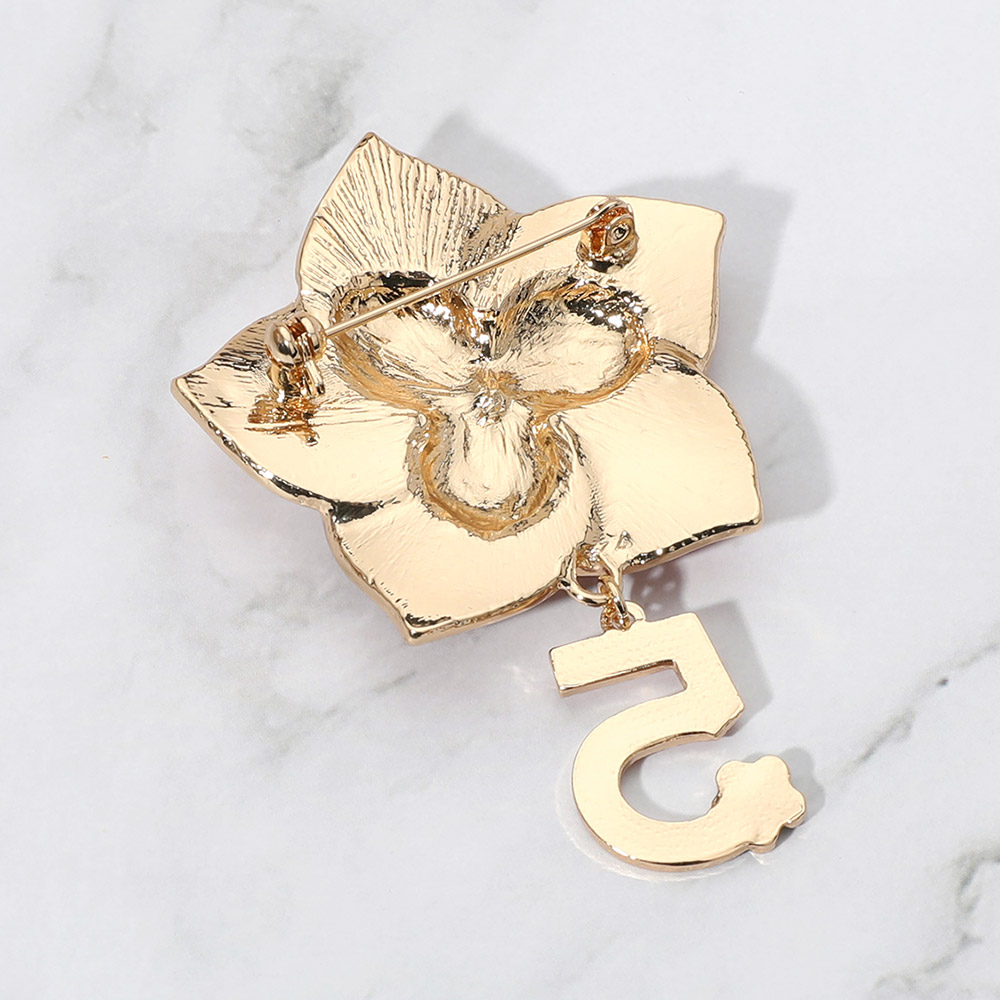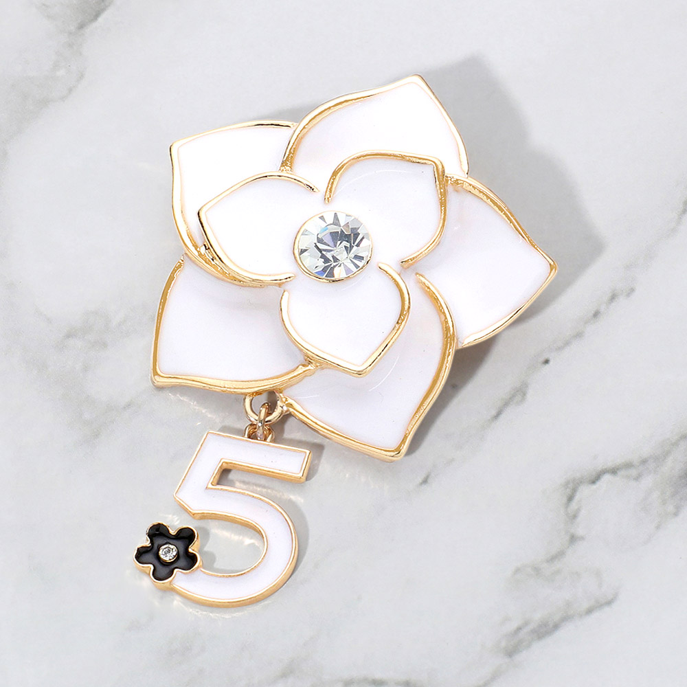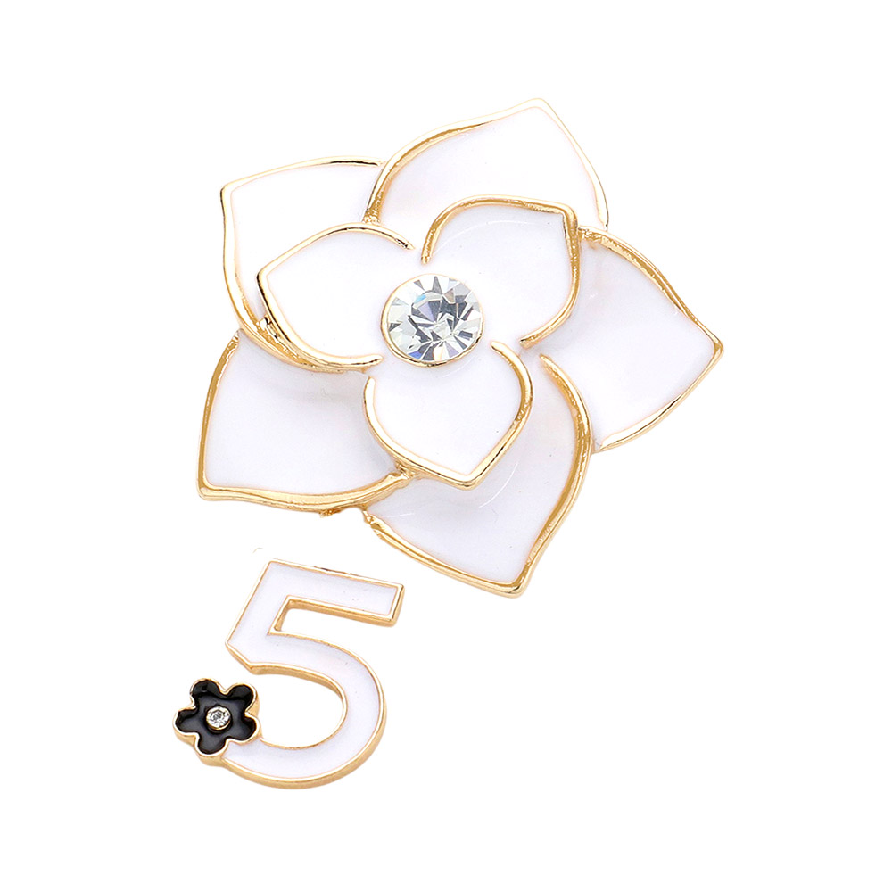 Stone Pointed Enamel Flower Number Five Dangle Pin Brooch