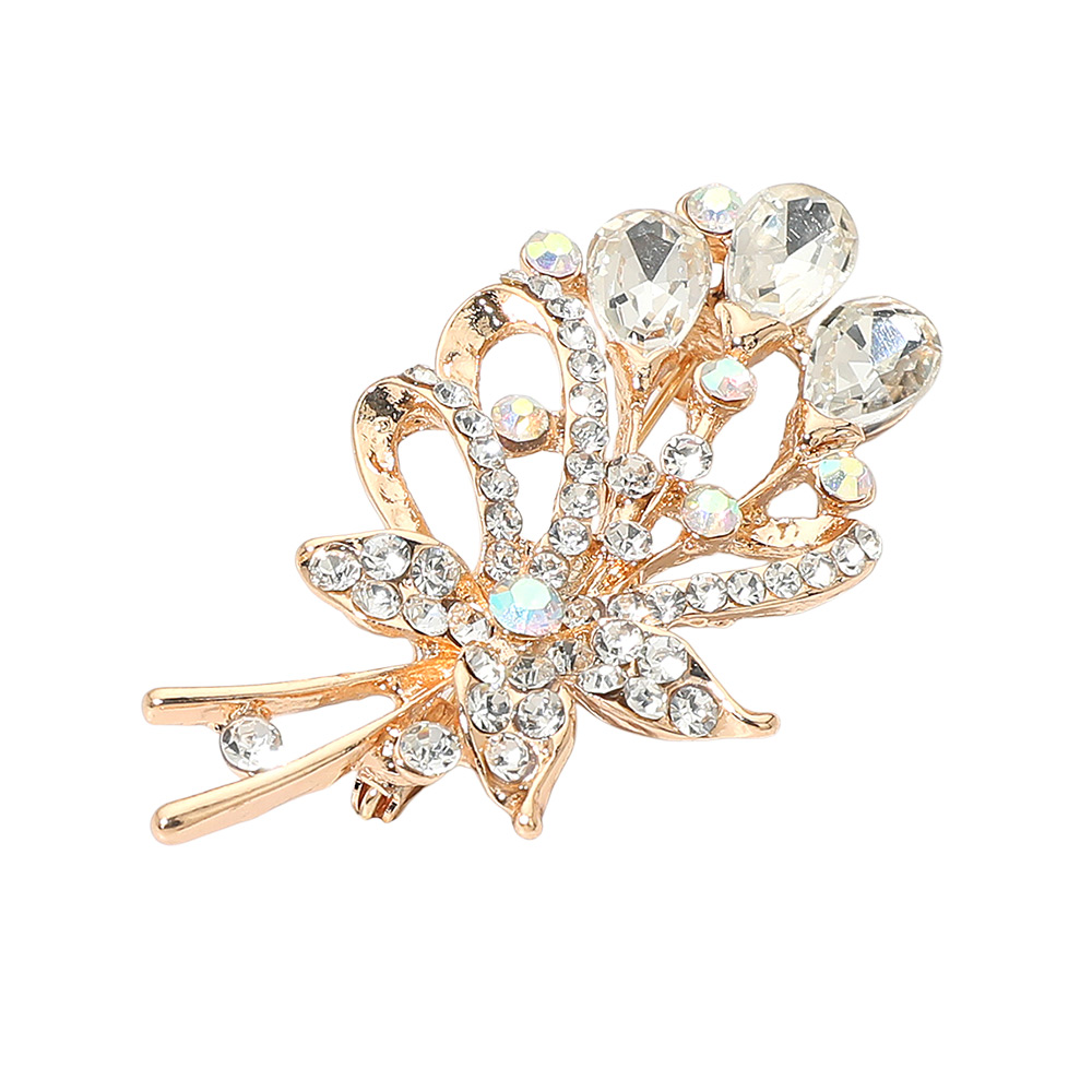 • Elegant floral spray brooch featuring a sparkling crystal-inspired design with layered petal details and radiant accents. A refined statement accessory that adds vintage charm and eye-catching brilliance to jackets, dresses, scarves, bags, and special occasion styling.