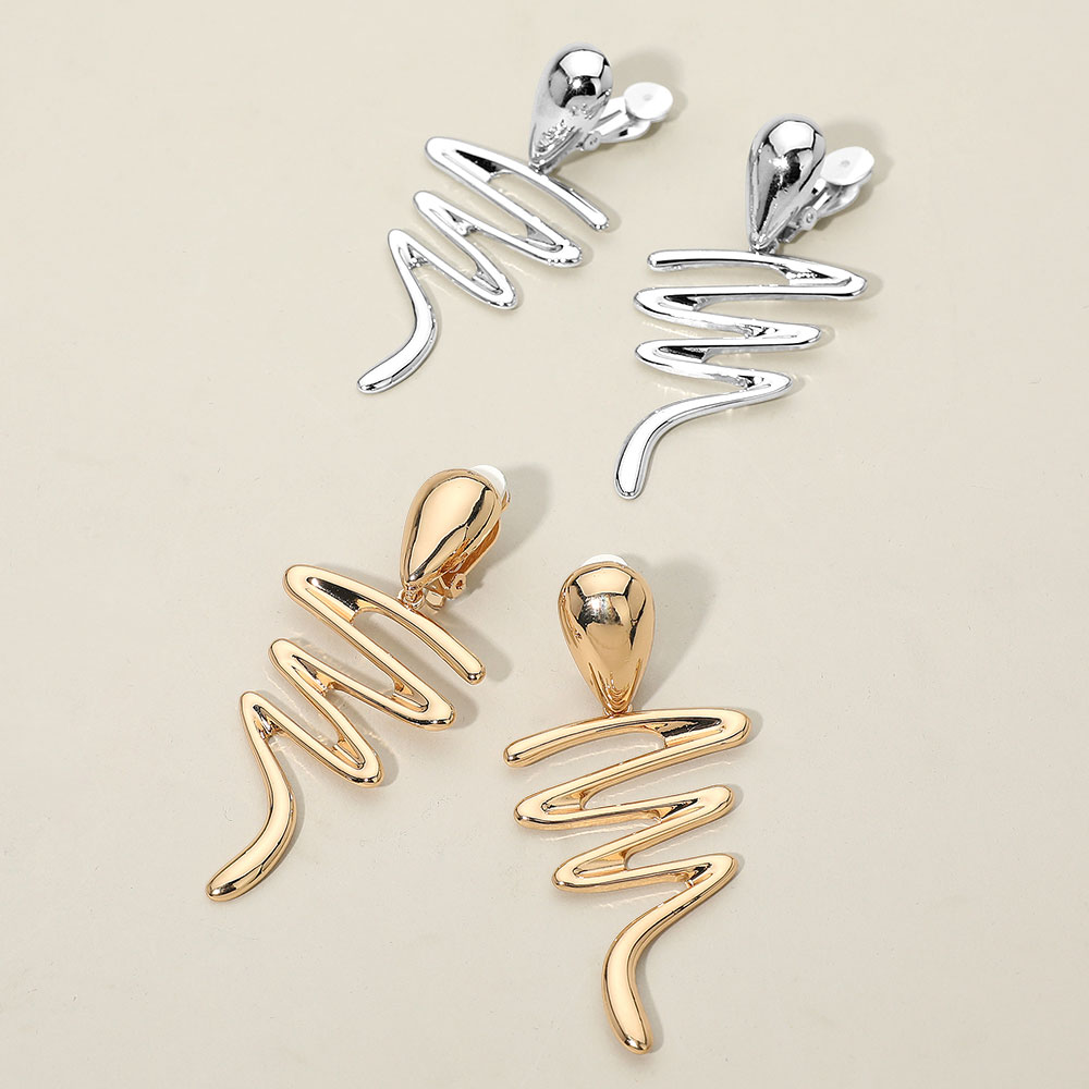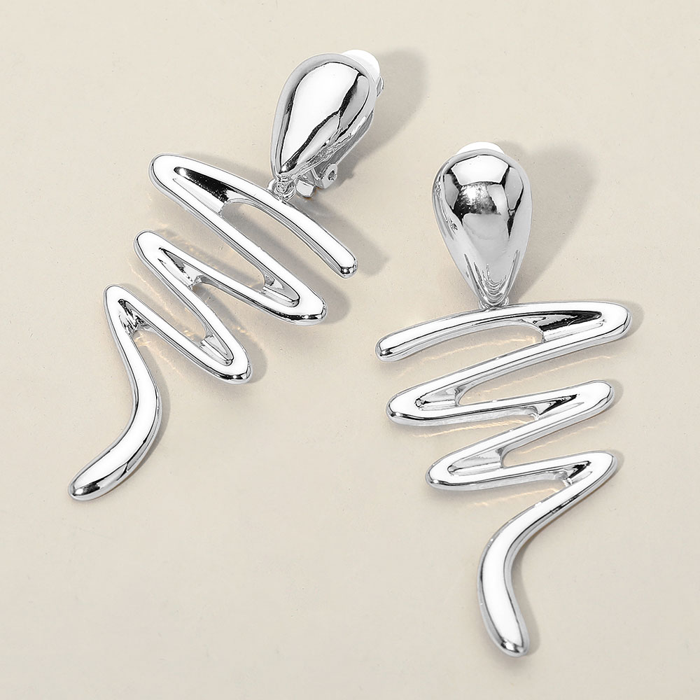 Bold Metal Abstract Wave Drop Dangle Clip On Earrings Bold Metal Abstract Wave Drop Dangle Clip On Earrings Bold Metal Abstract Wave Drop Dangle Clip On Earrings
