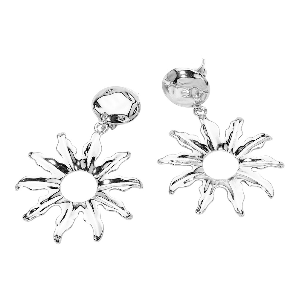 • Statement clip-on drop earrings featuring an abstract sunburst design with sculptural petal details. Lightweight and comfortable for non-pierced ears, these eye-catching earrings add artistic flair to everyday looks, resort wear, or special occasion styling.