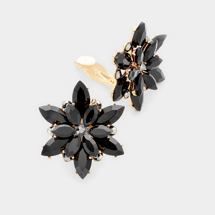 Crystal Flower Clip on Evening Earrings