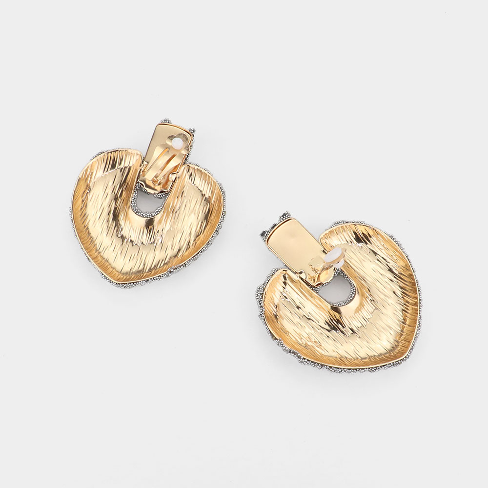 Cylinder Stone Embellished Heart Clip On Earrings