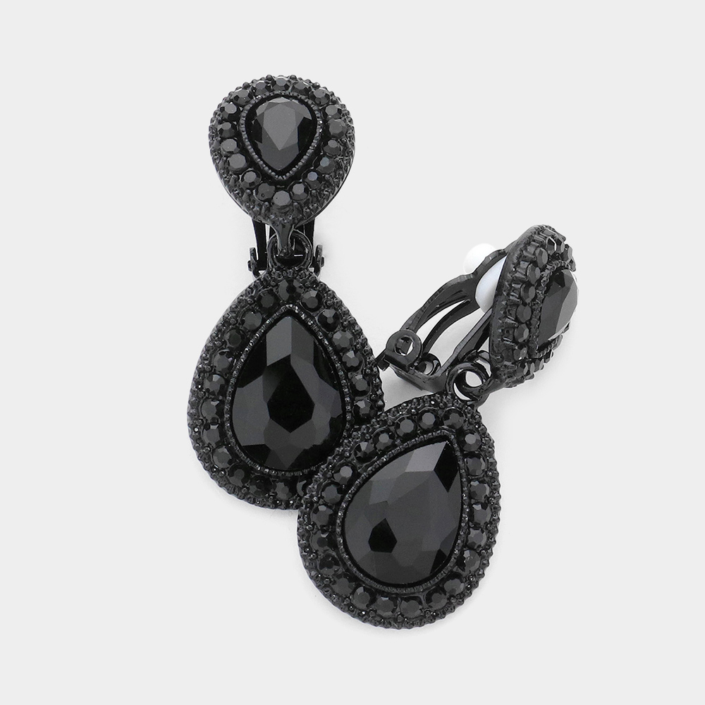 Double Teardrop Link Dangle Evening Clip on Earrings