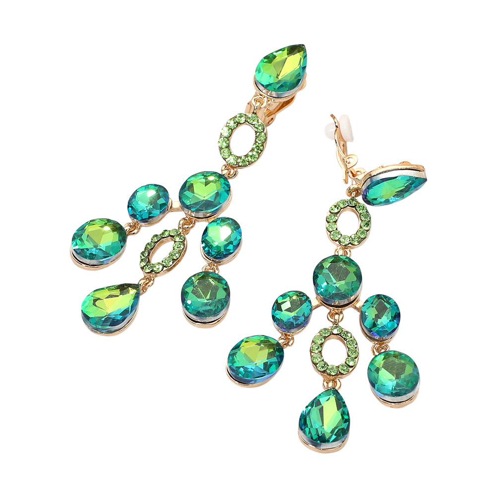 • Statement chandelier earrings featuring cascading faceted accents with a clip-on design for comfortable, secure wear. Ideal for special occasions, evening looks, and boutique collections, offering elegant movement, eye-catching sparkle, and versatile styling appeal without pierced ears.