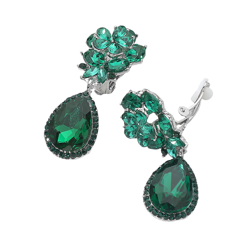 Flower Glass Crystal Teardrop Dangle Clip On Earrings Flower Glass Crystal Teardrop Dangle Clip On Earrings