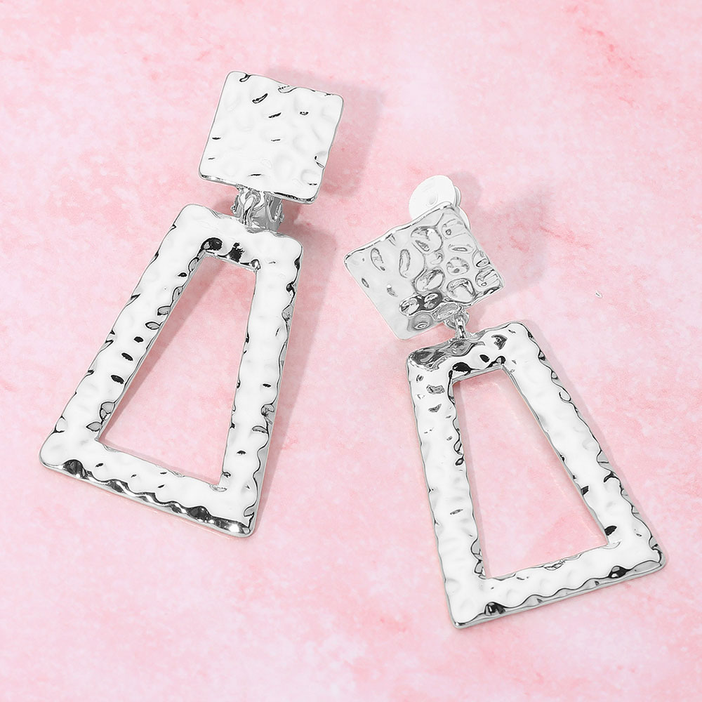 Geometric Hammered Metal Drop Clip On Earrings Geometric Hammered Metal Drop Clip On Earrings