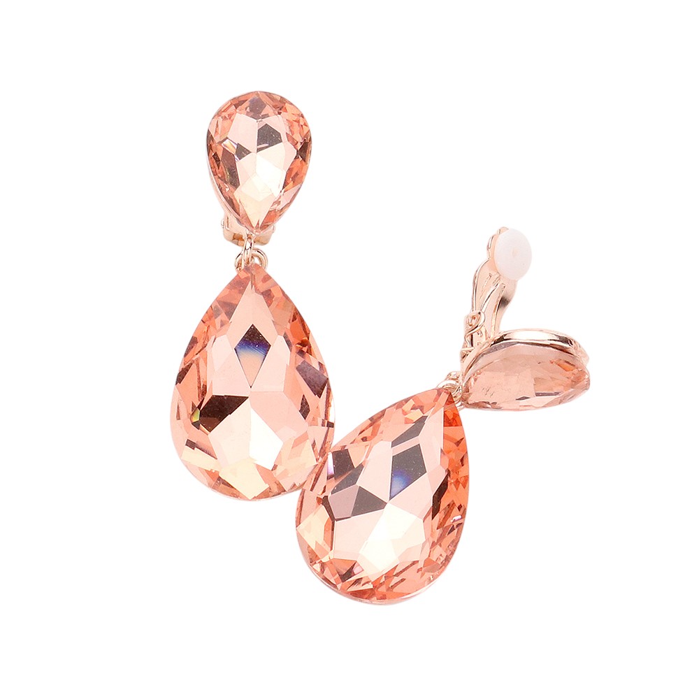 Glass Crystal Double Teardrop Clip on Evening Earrings
