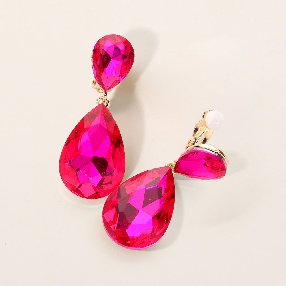 • Chic teardrop crystal clip-on earrings with a stunning faceted finish for timeless elegance. Designed for comfort without the need for piercings, these lightweight earrings add refined sparkle to any outfit—ideal for formal events, parties, or evening occasions.