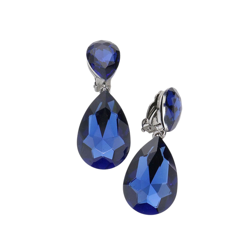 Glass Crystal Double Teardrop Clip On Evening Earrings Glass Crystal Double Teardrop Clip On Evening Earrings